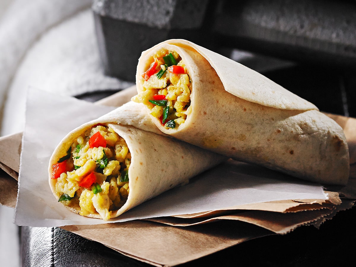 Sandwich roulé à l’omelette, au jambon et à l’érable