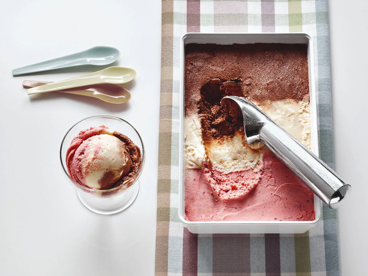 - Verser les 3 couleurs de crème glacée dans un contenant, en évitant de mélanger les couleurs. Conserver au congélateur.