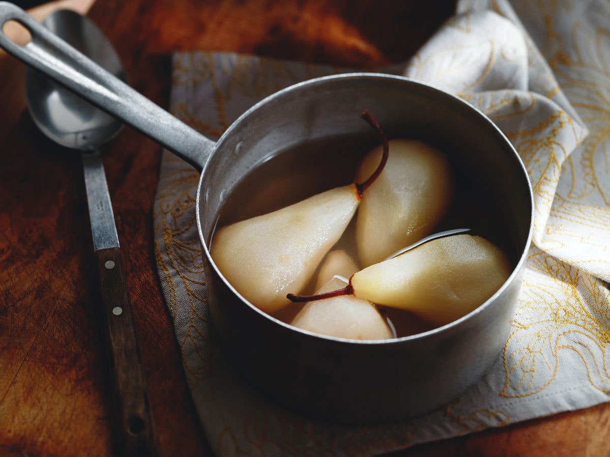 - Réfrigérer le sirop ou le servir tiède sur les poires.