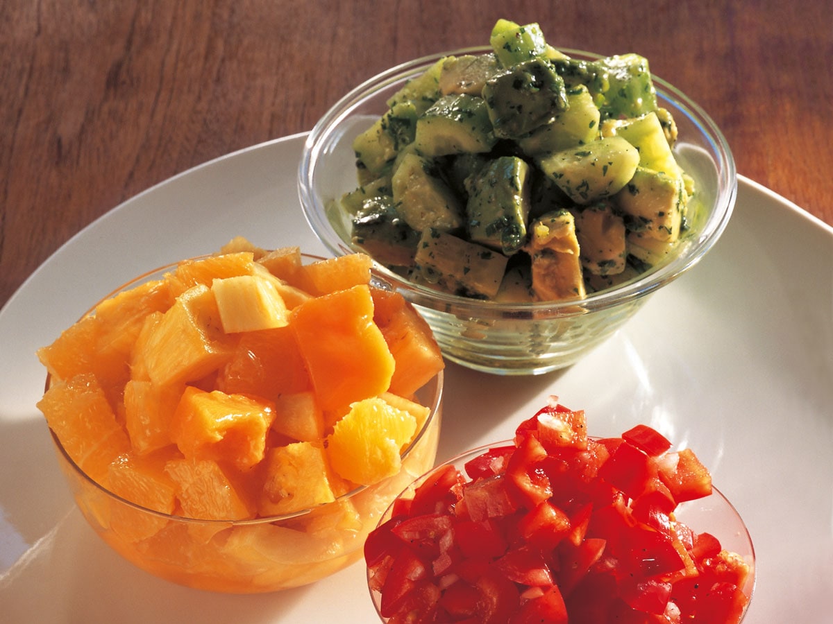- Mélanger ensemble tous les ingrédients des couleurs respectives.
