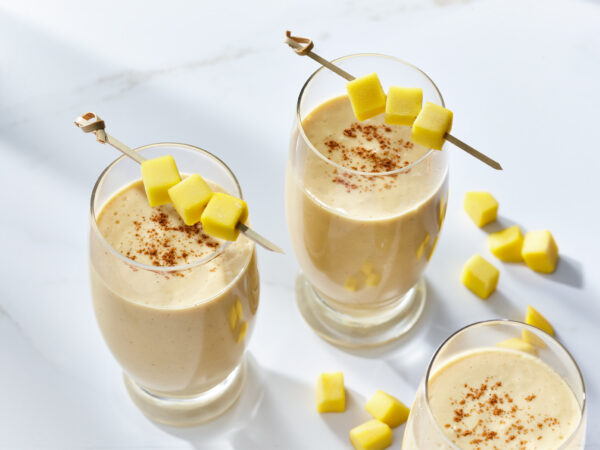 - Dans un mélangeur, mettre les cubes de mangue, le tofu et le yogourt. Bien mélanger jusqu’à consistance lisse.